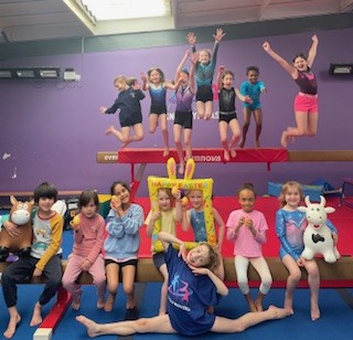 Gymnastics, Bars, beam, floor, vault, games, challenges, arts and crafts and bouncy castle.
